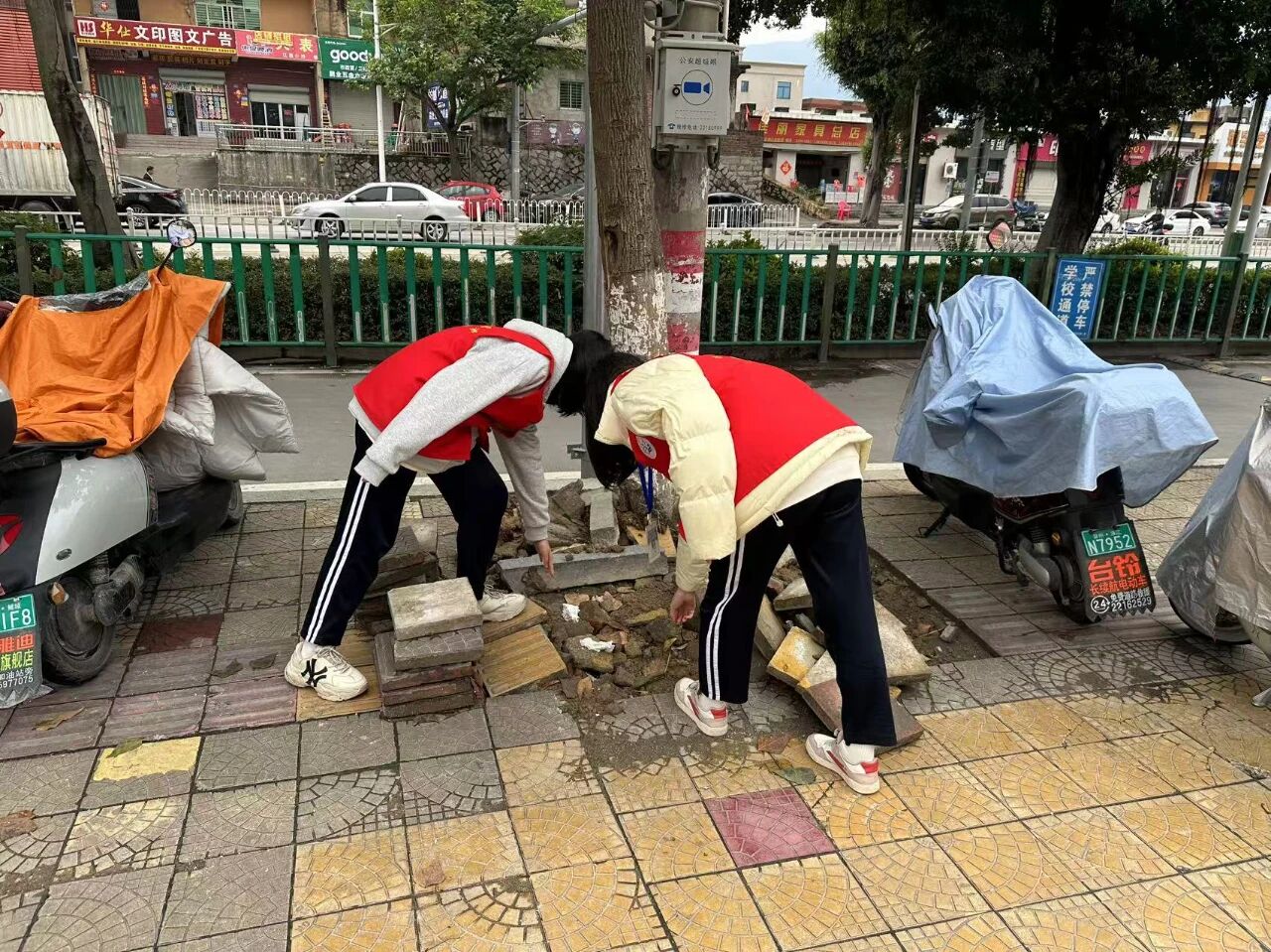 此外,师生志愿者联合树兜社区开展"春风送暖"行动: