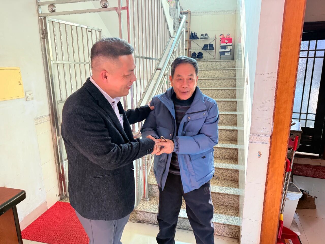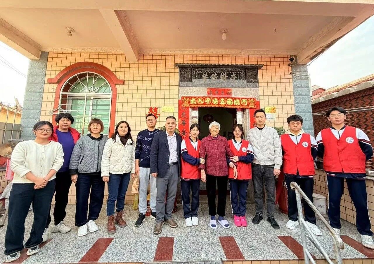 2025 年 2 月 27 日,泉州市明新华侨中学(泉中职业中专学校)联合树兜社区开展了一场充满温情的关爱活动。学校副校长兼关工委主任刘友生带领德育人员、党员代表以及学生志愿者团队,在树兜社区书记蒋彬泽、妇联主席蒋丽端的陪同下走访了烈士家属、一户多残困难家庭以及学校关工委五老、副主任蒋清溪。