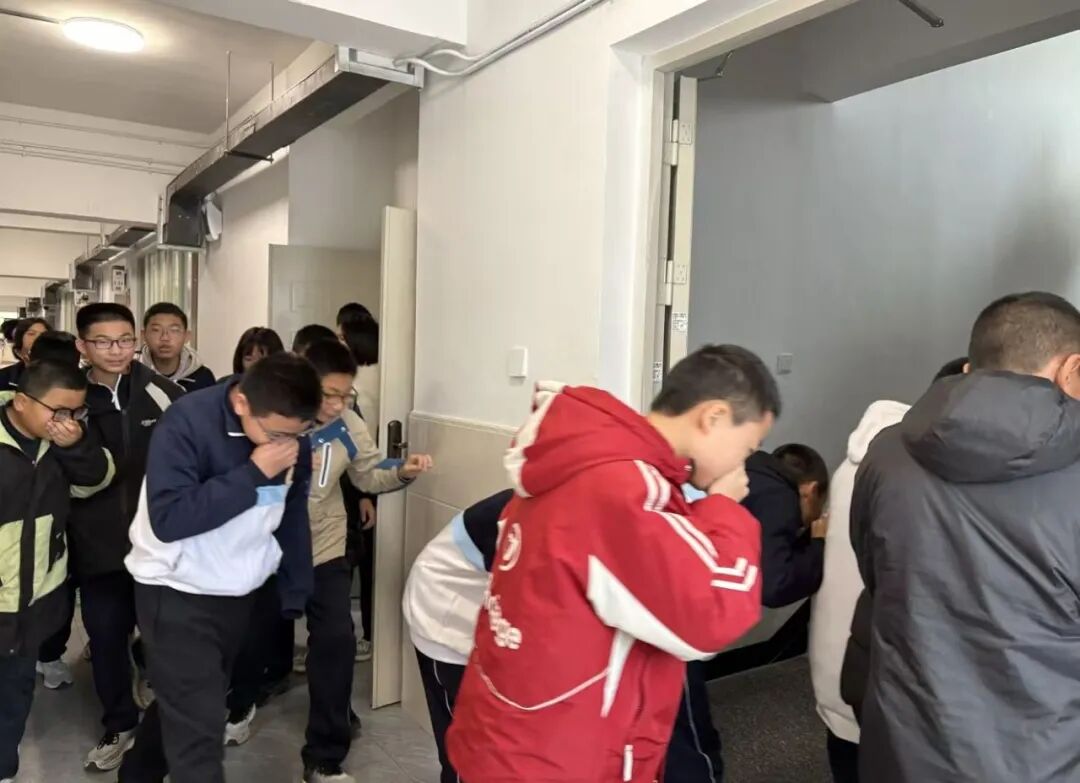 上午9时40分,校园内响起急促的消防警报声,模拟各教学楼楼层引发“火情”。全体师生迅速进入应急状态,各班学生在班主任及班干部的指挥下,用湿毛巾捂住口鼻,沿预定路线快速撤离至操场安全区域。过程中,各楼层教师实时疏散秩序,防止踩踏事故发生。仅用时2分45秒,全校一千余名师生全部完成疏散,并完成人数清点与汇报。