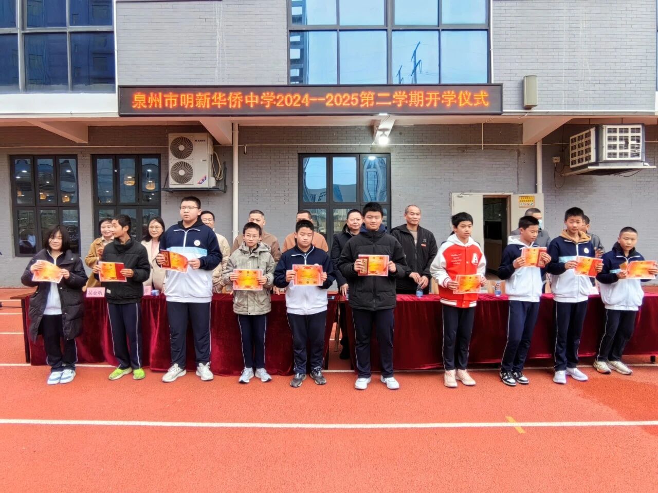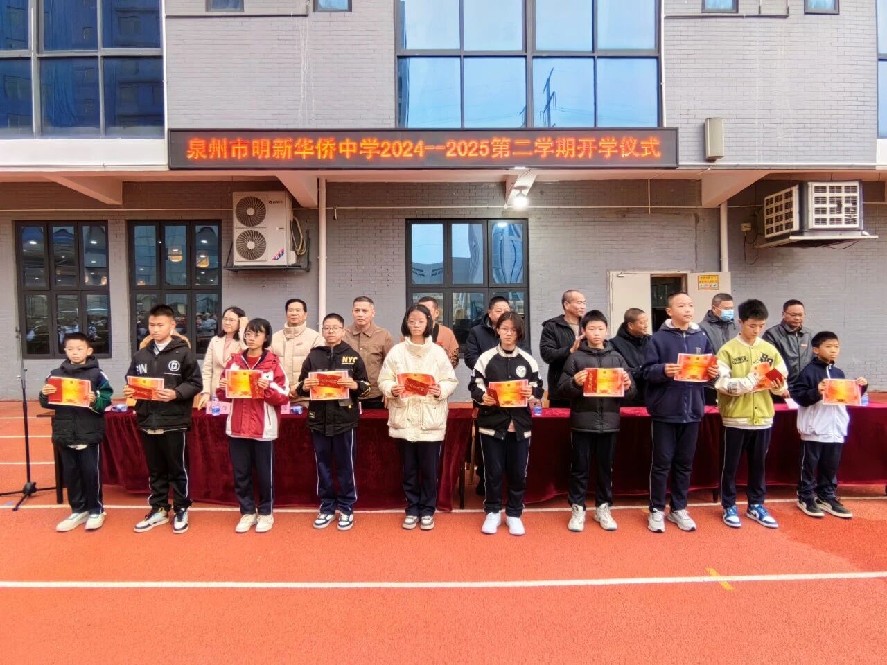 春意渐浓,万物焕新。2025年2月13日上午,泉州市明新华侨中学隆重举行“奋楫启新程,青春向未来”开学典礼暨优秀学生表彰大会,借此拉开新学期的序幕,开学仪式由我校政教处陈真珠主任主持。