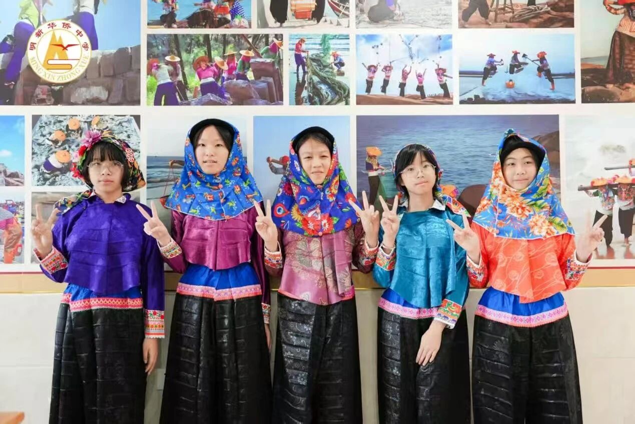 女生们化身“惠安女”,接过缀着银饰的头巾、色彩明艳的短衫,跟着老师学习“封建头、民主肚、节约衫、浪费裤”的服饰密码。有人对着镜子反复调整头巾褶皱,有人互相帮忙系紧腰带,当整套服饰穿戴整齐,摆出含蓄又明媚的笑容时,仿佛从闽南画卷里走出来的少女,定格下传统与青春碰撞的惊艳瞬间。