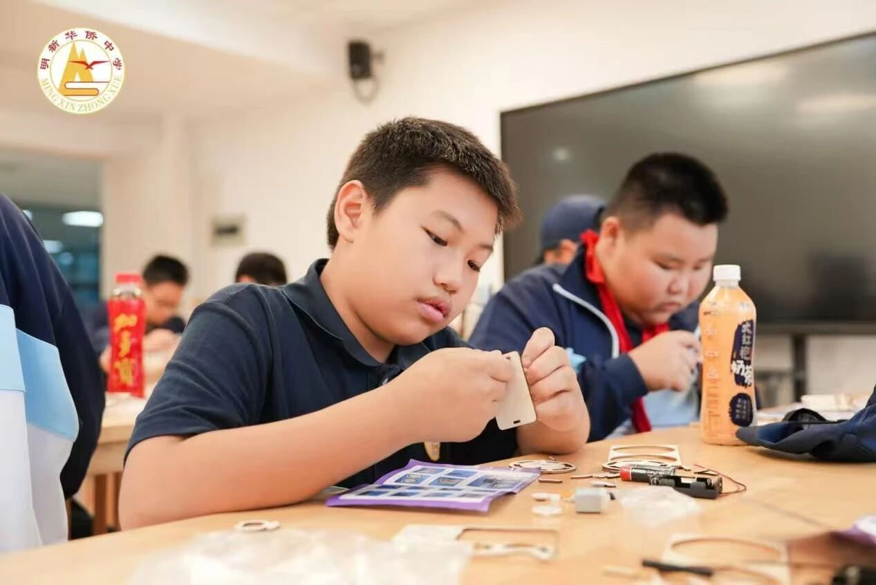 男生们则围坐成圈开启“科技手工营”:有人捧着卫星模型零件,对照图纸一点点拼接太阳能板与天线,眼神专注得像在完成“太空任务”;有人拿着平衡车组件,小心翼翼对准卡扣,时不时和身边同学交流“齿轮要怎么卡才更稳”。指尖起落间,零散的零件渐渐拼凑出卫星的轮廓、平衡车的雏形,当亲手组装的“科技作品”完整呈现,大家举着成果互相“炫耀”,眼里满是“从0到1”的创造喜悦。