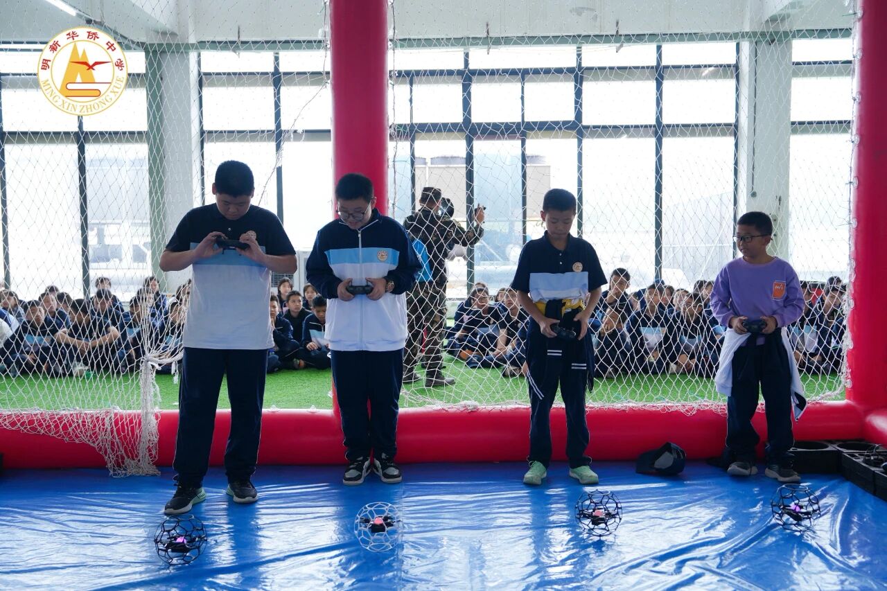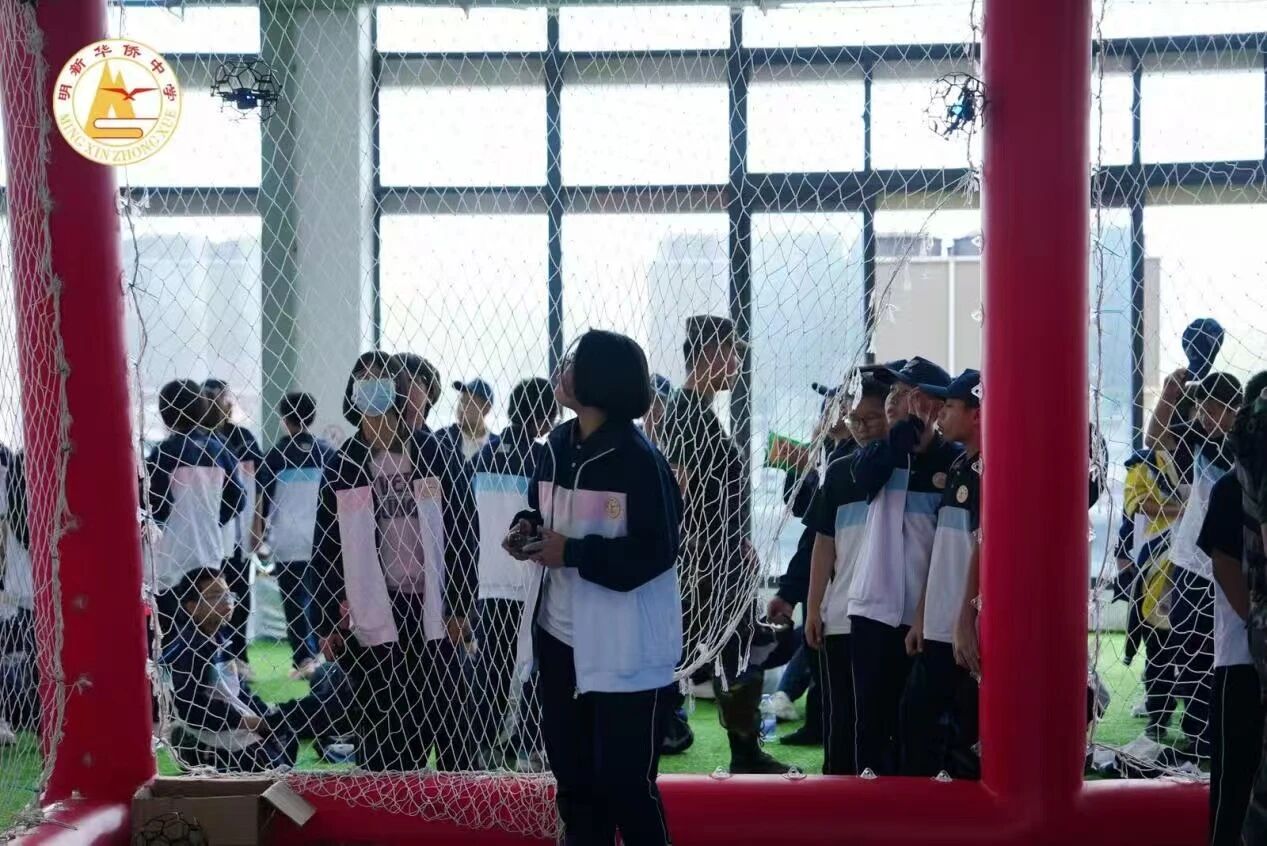 而当无人机腾空而起,螺旋桨转动的嗡鸣中,风驰电掣,时上时下,越过一个又一个障碍圈,让仰头观望的同学们忍不住发出阵阵惊叹。