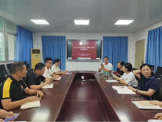 惜光阴及时勉励,乘东风再上征程。为统一思想、明确目标、同心协力备战2024年中考,明新华侨中学初三年段于2023年9月21号召开了年段教师会。校长刘伟杰、副校长张益煊、副书记吴剑雄、教务处主任吴金明、政教处主任陈真珠出席会议,全体初三教师参加此次会议,会议由陈伟杰段长主持。