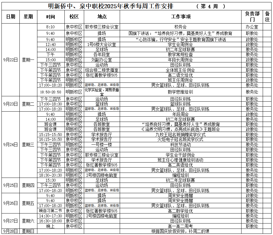 【09月22日 星期一】 2025年秋季第04周工作安排