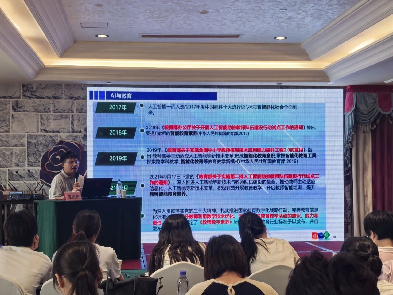 陈震东教授(浙江师范大学计算机科学与技术学院博士)在《新时代教师的人工智能素养》讲座中,系统解读人工智能发展历程与教师数字素养框架,涵盖数字化意识、技术知识与技能等核心维度,深入剖析多模态大模型、具身智能等前沿趋势,并结合提示词设计技巧等实操内容,为教师筑牢 AI 教育理论根基。