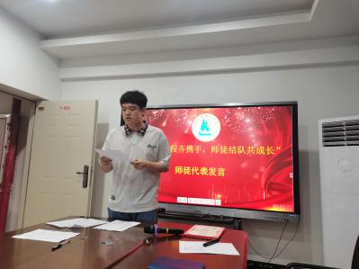 在师徒代表发言环节,徒弟代表邱浩桓老师表达了对师傅们由衷的敬意与感激,并表示将虚心求教、勤学笃行,尽快成长为一名优秀的人民教师。师傅代表程金莲老师则表示将倾心相授、尽责尽力,帮助青年教师在专业道路上稳步前行,共同书写教育新篇章。