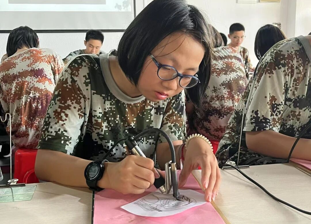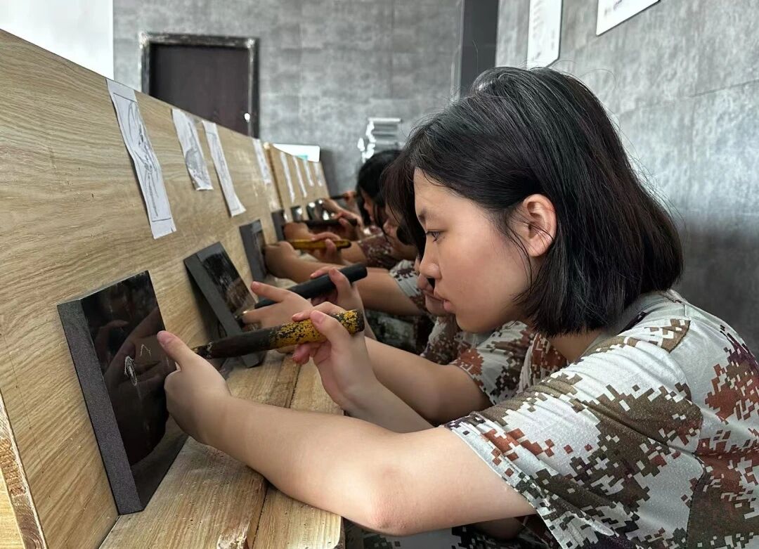 继首日的纪律训练后,同学们深度沉浸于惠安丰富的非物质文化遗产。走进民俗馆感受风土人情;亲手尝试影雕的精湛,在石板上刻画细腻;绘制油纸伞体会传统之美;体验陶艺手拉坯,感受泥土灵动;参与烙画创作,以温度在木板作画。书本上的文化,在此刻鲜活呈现。