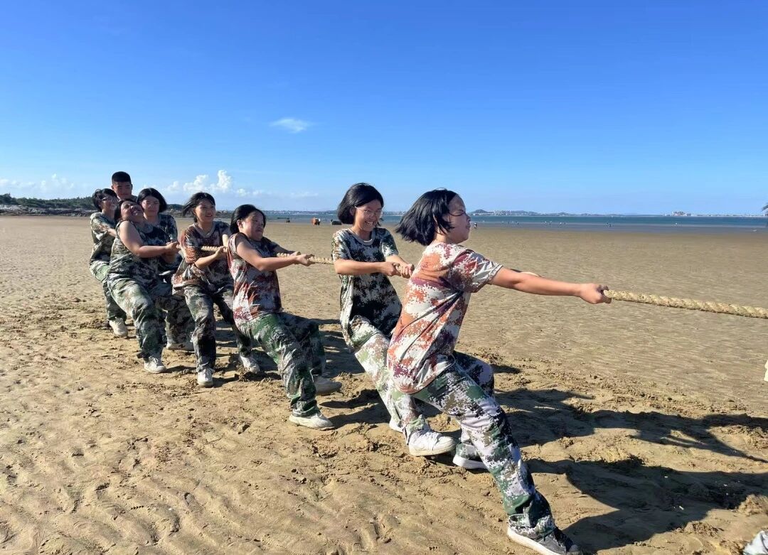 本次实践的重头戏——团队拓展项目,将协作精神推向高潮。“珠行千里”考验速度与衔接;“合力搭建”激发智慧与协作;“不倒森林”强调节奏与信任;“汉诺塔”挑战逻辑与策略;“支援前线”比拼效率与奉献。每个项目都深刻印证:个人力量有限,团队潜能无限!而沙滩拔河的激烈角逐,更将团队激情燃至顶点。