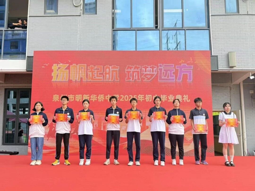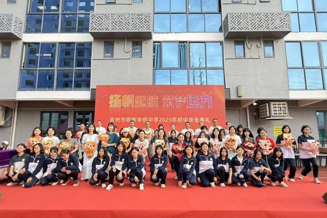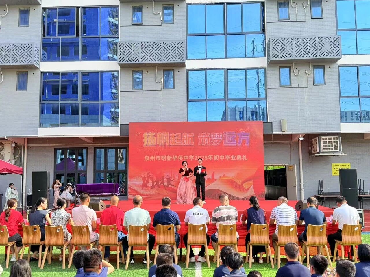 夏木扶疏,骊歌轻响。6月25日下午,明新华侨中学2025届初三毕业生齐聚校园,怀揣着对过往的深深眷恋与对未来的无限憧憬,迎来了属于他们的盛大毕业典礼。校领导、全体初三师生、家长代表共同见证了这一难忘时刻。