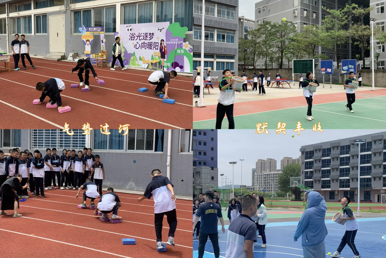 6月4日上午和下午,初一和初二年段分别开展了心理游园会活动。在操场上开展的气垫过河、默契丰收等团队活动,让学生们在肢体协作中释放压力,更是强化了伙伴信任与情绪管理能力。