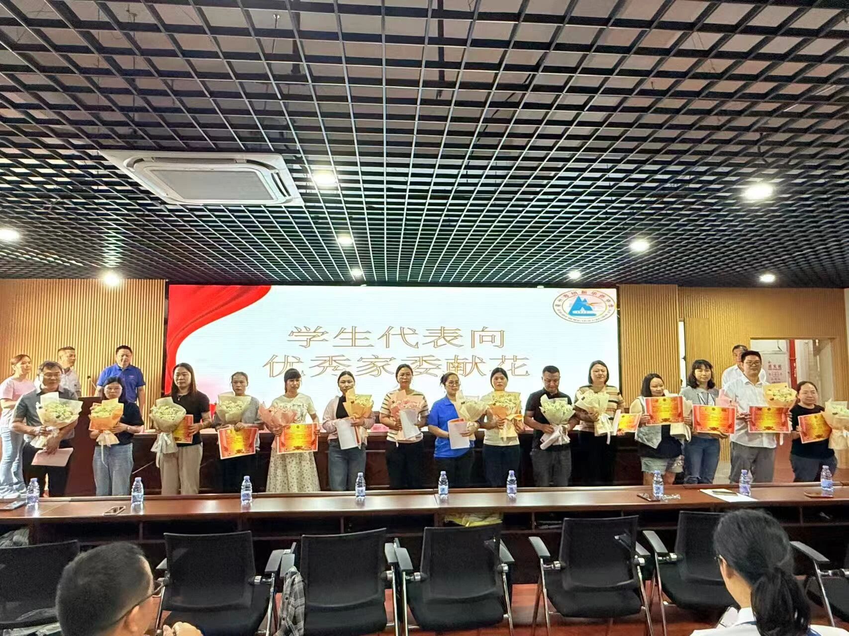 学生代表向2022级家委会委员代表献上美丽鲜花,感谢2022级家委会委员们一直以来对学校工作的支持、帮助和无私奉献。