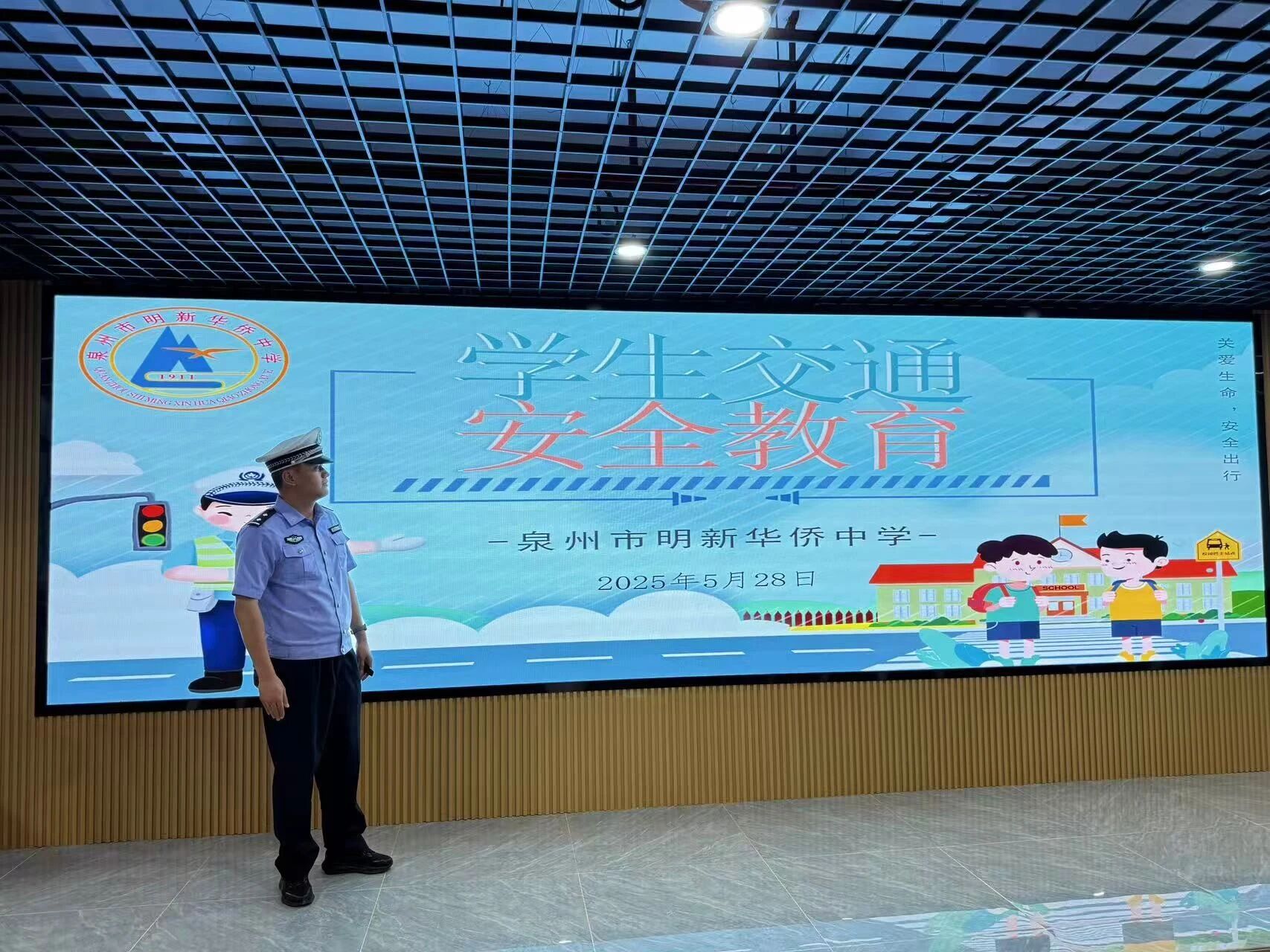 为了让师生认识到交通安全的重要性,提高文明交通意识, 2025年5月28日下午泉州市公安局交通警察支队鲤城大队五中队苏天福警官走进我校,开展了一场别开生面的交通安全宣传活动。