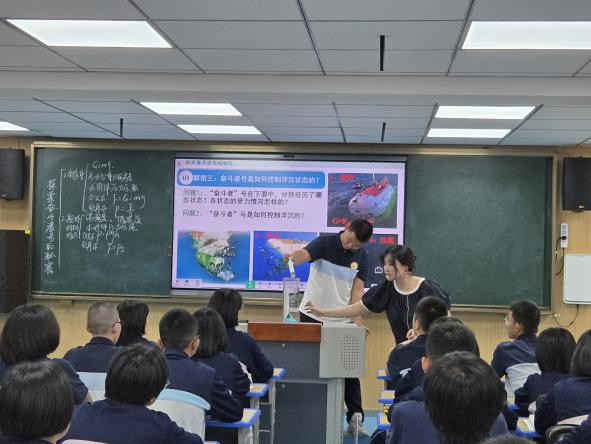 泉州市明新华侨中学黄思敏老师带来题为《探索“奋斗者”号的秘密——浮力与压强大单元复习教学》的观摩课,以我国深海探测器“奋斗者”号为情境主线,融合压强、浮力等知识,运用情境、问题驱动法,结合实验与AI工具,解析科技原理。课程强化物理观念与科学思维,提升知识迁移能力,同时借深海探测成就增强民族自豪感,落实核心素养,实现物理教学与科技前沿的深度联动,助力学生全面发展。