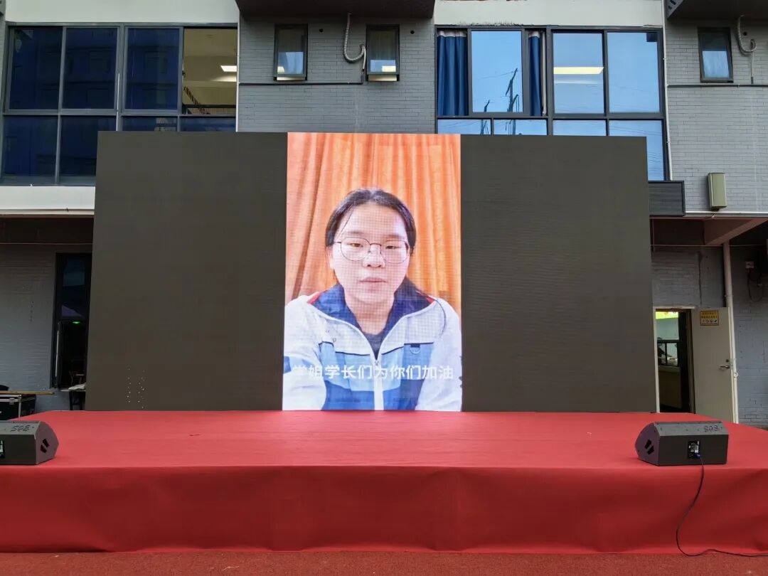 大屏幕播放历届优秀毕业生“云祝福”:“我在五中等你!”“食堂给你们留座!”……笑声与泪水交织,祝福与鼓舞齐到。