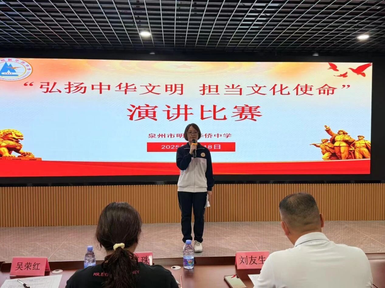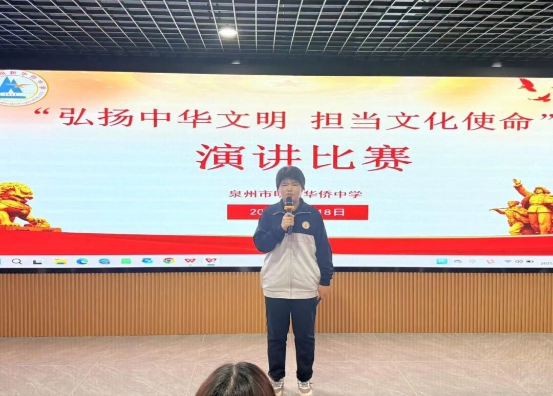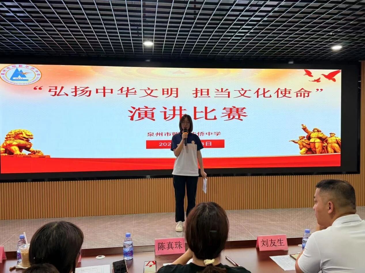 张秋婷老师:“同学们的演讲精彩纷呈,既有“家国情怀”的感染力,又有“以文化人”的穿透力,这恰是德育从课堂认知到生命践行的最美转化。此次演讲比赛不仅是泉州七中名优校+成员校教育的成果绽放,更是德育共融为文明传承注入的青春势能!让我们看到:名校教育赋予的不仅是知识图谱,更是将文化基因转化为使命担当的精神解码器。”