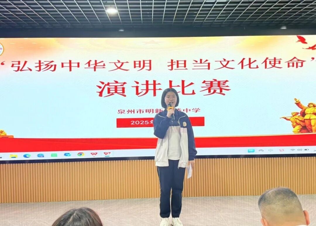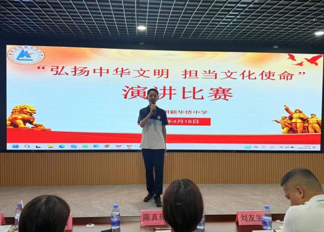 当良渚玉琮的纹路遇见量子计算机的光点,当敦煌飞天的神韵碰撞空间站的科技,一场跨越五千年的文明对话在校园中热烈展开。4月18日下午,我校以“弘扬中华文明,担当文化使命”为主题的春季演讲比赛圆满落幕。13位选手以青春为砚、以奋斗为墨,用激情与智慧续写华夏文明的璀璨篇章!