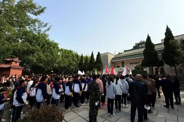 为深切缅怀革命先烈,赓续红色血脉,更好地传承红色基因、弘扬爱国主义精神,4 月 2 日下午,我校联合常泰街道树兜社区党委、居委会共同开展了一场意义非凡的祭扫烈士墓活动,深切缅怀树兜社区的越战烈士蒋亚彬,弘扬英烈精神,传承红色基因。此次活动在树兜社区紫帽山灵宝堂举行,我校党支部副书记吴剑雄、分管德育副校长刘友生率领师生代表共计500余人怀着崇敬与哀思参与其中。
