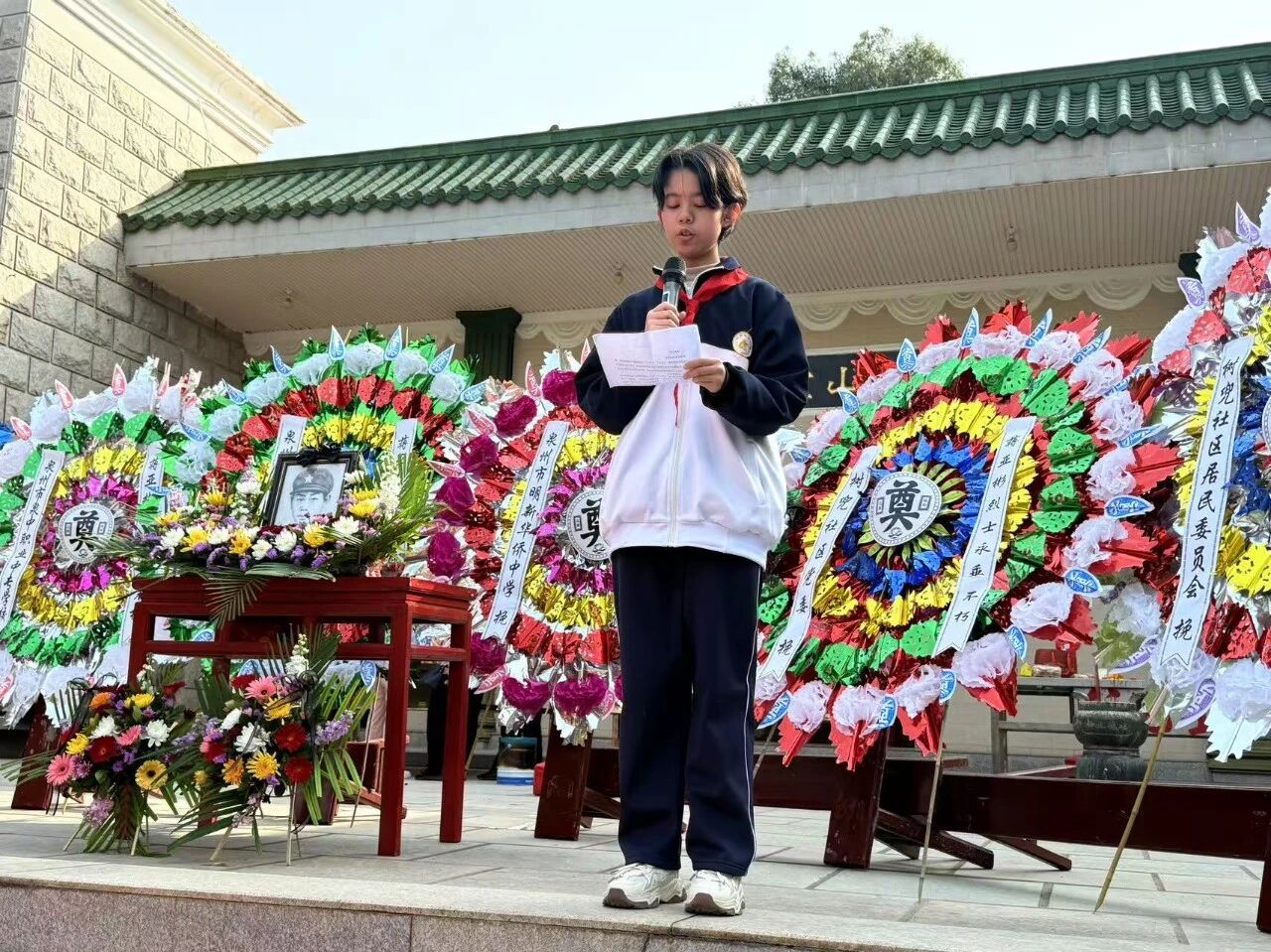 明新侨中少先队大队长吴芷涵同学作为学生代表发言,声情并茂地表达对先烈的敬仰,表示将以烈士为榜样,树立远大理想,为民族复兴而奋斗。