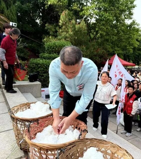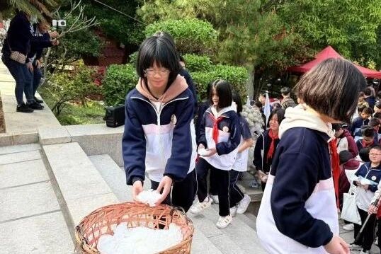 师生们将亲手制作的小白花轻轻放置遗像前,一瓣瓣白花寄托哀思,更象征“知史爱党、知史爱国”的信念萌芽。