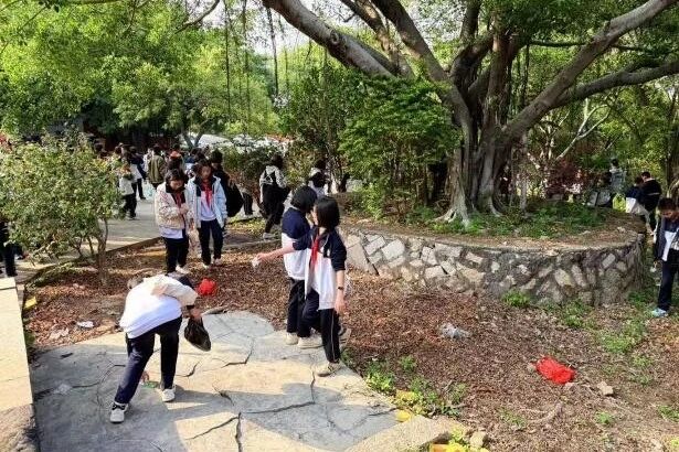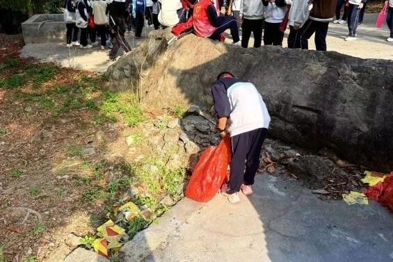 仪式结束后师生共同清理陵园周边环境,以实际行动践行对英烈的敬意。