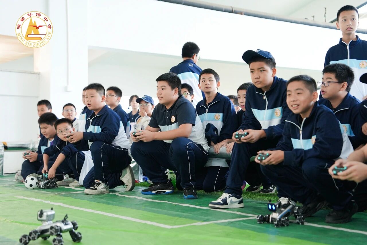 足球机器狗前,黑白相间的机械身躯灵活得像真正的赛场健将:接到“带球”指令,它便迈着小而稳的步伐,四轮驱动精准避开障碍桩;听到“射门”指令,机械臂瞬间发力,足球“嘭”地撞向球门,稳稳落网的瞬间,围观的同学们立刻炸开了锅,掌声和欢呼声差点盖过机器狗的运行嗡鸣。