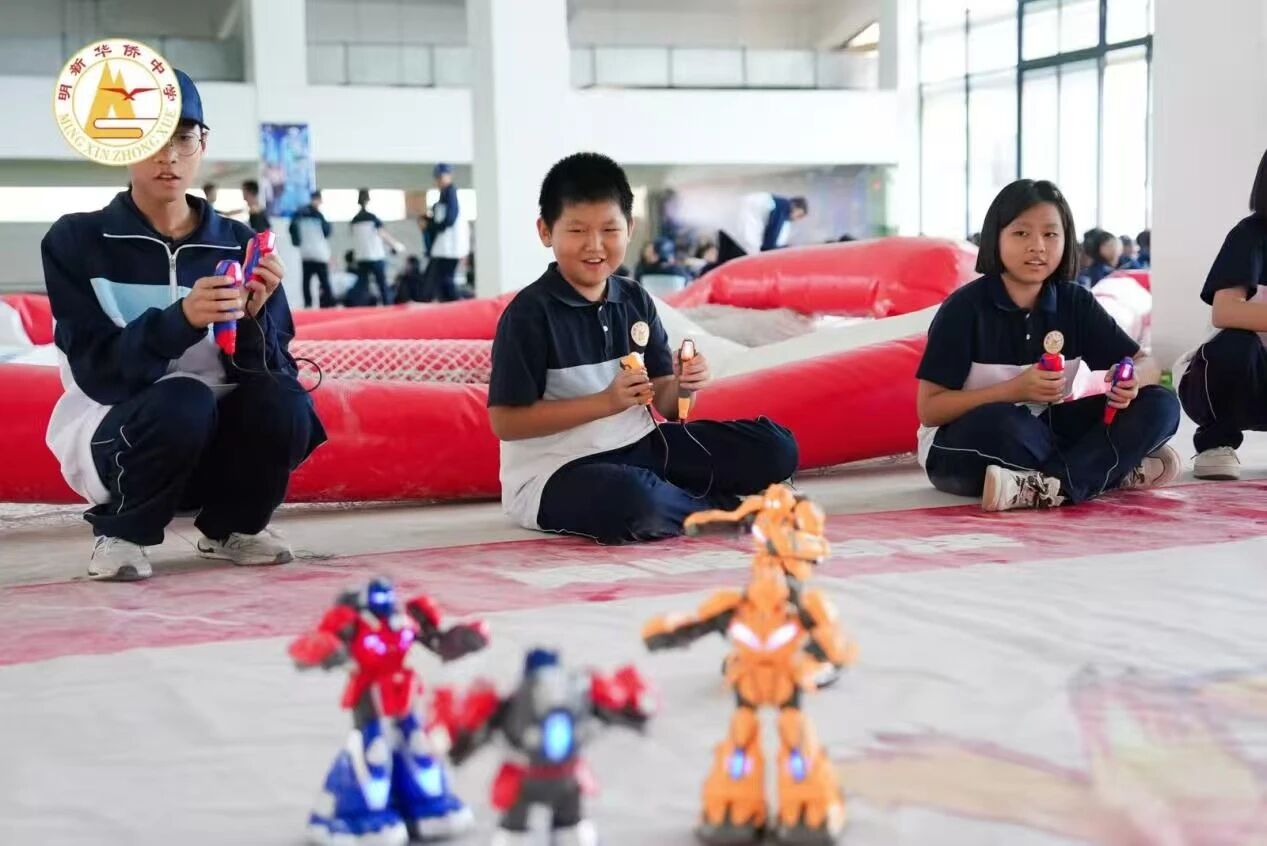 格斗机器人对战台旁,几台金属质感的“战士”正展开激烈对抗:红色机器人率先出拳,机械臂带着“咔嗒”的咬合声直逼对手;蓝红色机器人迅速后撤,灵活转身绕到侧面,猛地用机械臂敲击对方机身,在“滋滋”的电流声中将其轻轻掀翻。台下的目光紧紧锁着对战台,每一次攻防转换都让呼吸跟着放缓,胜负揭晓的瞬间,全场的欢呼差点掀翻头顶的天空。