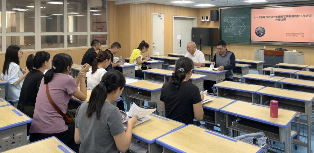 10月30日至31日,泉州市初中地理教学研究基地校工作研讨活动在泉州市明新华侨中学成功举办。本次活动聚焦“人工智能赋能初中地理教学”,汇集了三所基地校的地理教师代表及县区教研员等20余人,共同探索AI技术与地理教学的深度融合路径。活动由泉州市教育科学研究院地理教研员叶胜日老师主持。