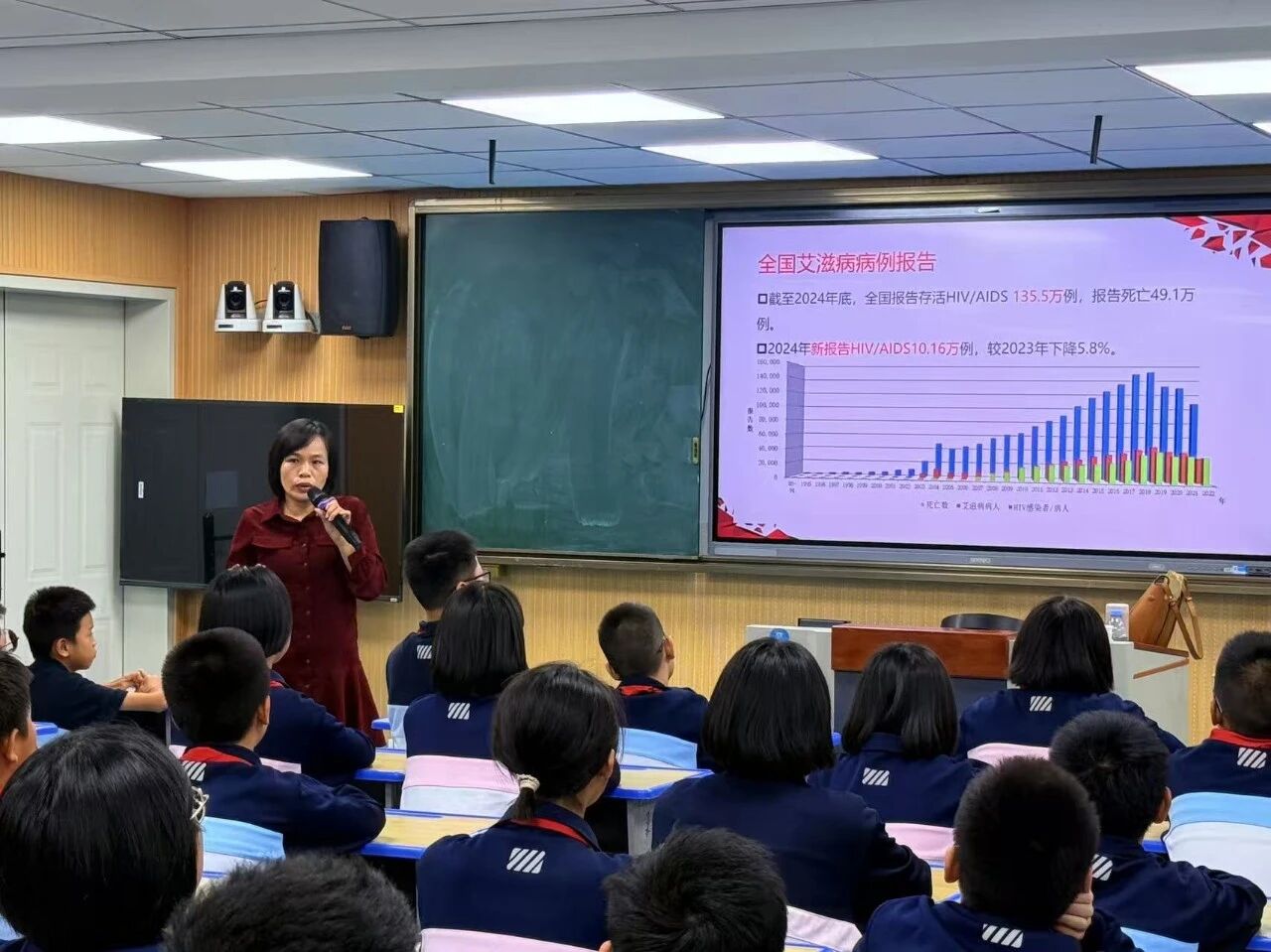 为增强青少年对艾滋病的科学认知,鼓励每位同学成为防艾宣传的星星之火,将知识传递给更多人。11月5日下午,在鲤城区疾控中心的安排下,泉州市疾控中心邓金兰讲师走进泉州市明新华侨中学,为同学们带来了一场富有教育意义的防艾专题讲座。邓老师通过专业讲解与互动交流相结合的方式,将科学的防艾知识和理性的健康观念带入校园,引导学生筑牢青春防线。