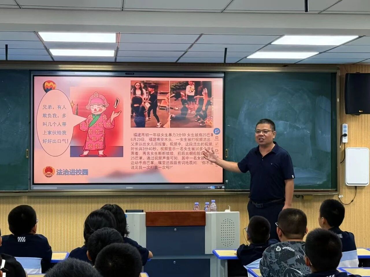 为进一步筑牢校园安全防线,增强学生的法治观念与自我保护能力,有效预防和抵制校园欺凌现象,营造健康和谐、积极向上的育人环境,9月17日,国家二级心理咨询师、 教育硕士、国家中高级沙盘游戏咨询师、家庭教育指导师苏桂发走进明新中学,为同学们带来了一场生动而深刻的“同沐阳光,拒绝欺凌”法治教育专题讲座。