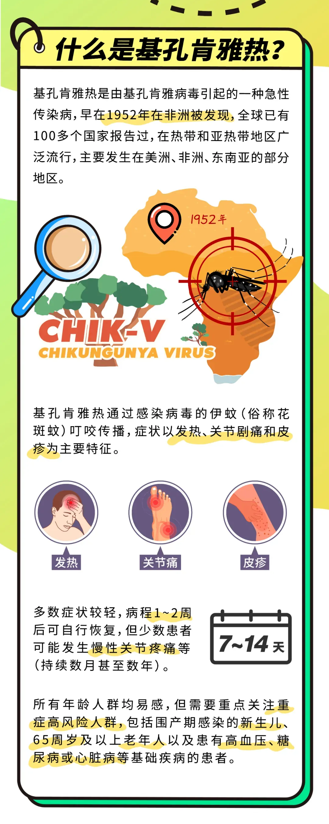 当前正值蚊媒传染病(如登革热、基孔肯雅热)高发季节。登革热、基孔肯雅热是经伊蚊(俗称“花蚊”“花斑蚊”“花脚蚊”)叮咬传播的急性传染病,主要症状为发热、皮疹和肌肉关节疼痛等。大多数患者在1-2周内痊愈,少数患者发病后病情进展迅速,可能出现出血、休克等症状。为了您和家人的健康,我们诚挚呼吁您积极参与蚊媒传染病防控工作,现提出以下倡议: