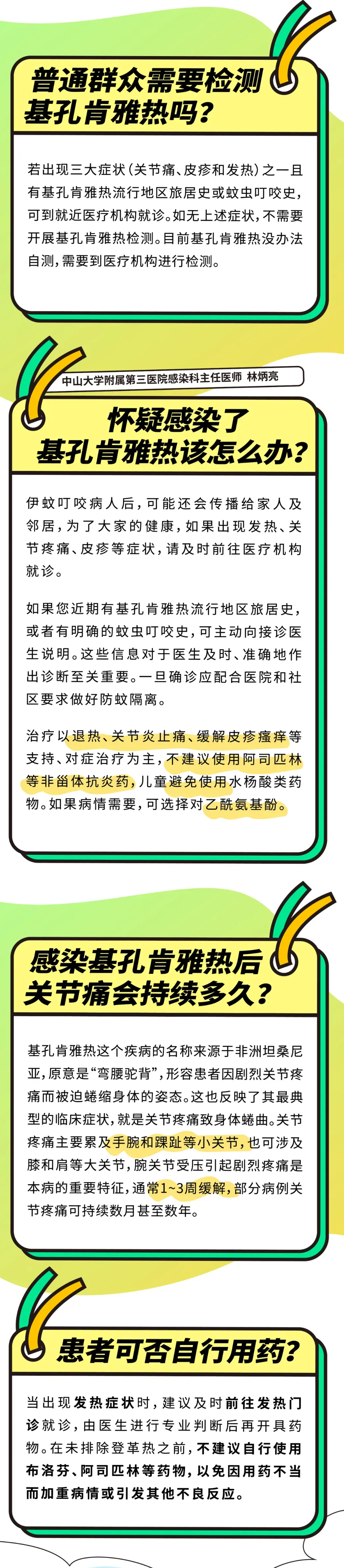 若身体不适,有发热、出疹、关节痛等疑似登革热或基孔肯雅热表现,应马上去正规医院,主动告知医生相关旅居和蚊虫叮咬情况,利于准确诊断治疗。同时,及时联系班主任,方便学校掌握情况,共同做好防控工作。