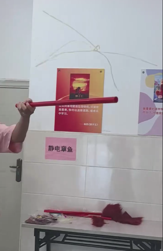 在实践会场,“趣味物理实验操作” 成为热门项目,学生们以小组为单位,精心演示 “人体导电灯泡”“制作水果电池”“静电章鱼”“水火箭发射” “手中生火”“大象牙膏”“烧不坏的手帕”“碘酒显影” 等实验一个个惊艳亮相,学生们在教师的指导下规范操作,近距离观察实验现象,现场不时响起阵阵惊叹声与掌声。