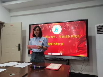 在师徒代表发言环节,徒弟代表邱浩桓老师表达了对师傅们由衷的敬意与感激,并表示将虚心求教、勤学笃行,尽快成长为一名优秀的人民教师。师傅代表程金莲老师则表示将倾心相授、尽责尽力,帮助青年教师在专业道路上稳步前行,共同书写教育新篇章。