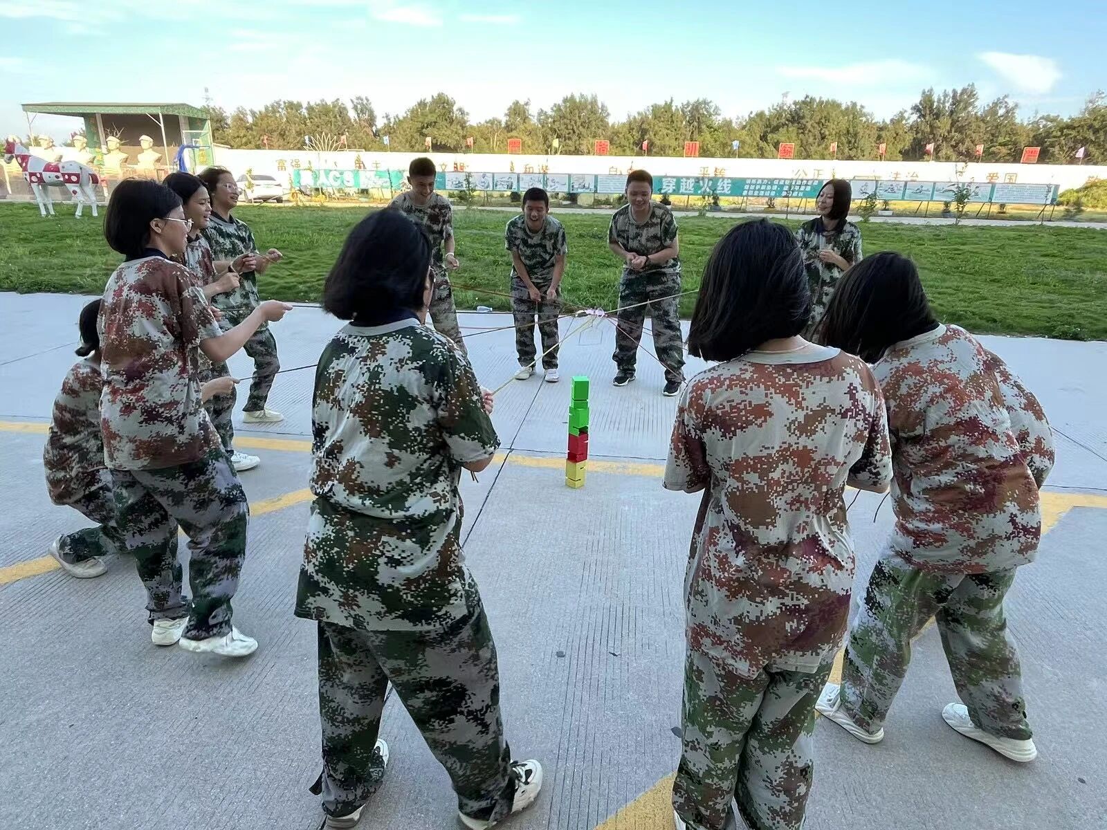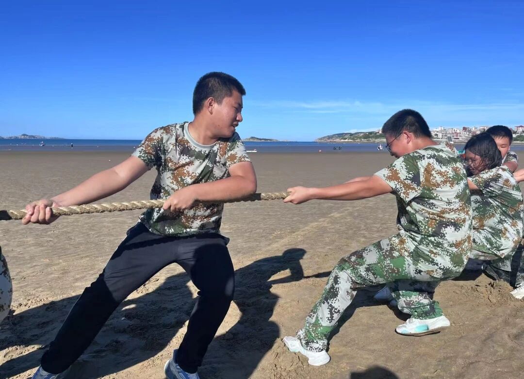 本次实践的重头戏——团队拓展项目,将协作精神推向高潮。“珠行千里”考验速度与衔接;“合力搭建”激发智慧与协作;“不倒森林”强调节奏与信任;“汉诺塔”挑战逻辑与策略;“支援前线”比拼效率与奉献。每个项目都深刻印证:个人力量有限,团队潜能无限!而沙滩拔河的激烈角逐,更将团队激情燃至顶点。