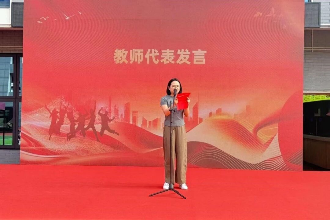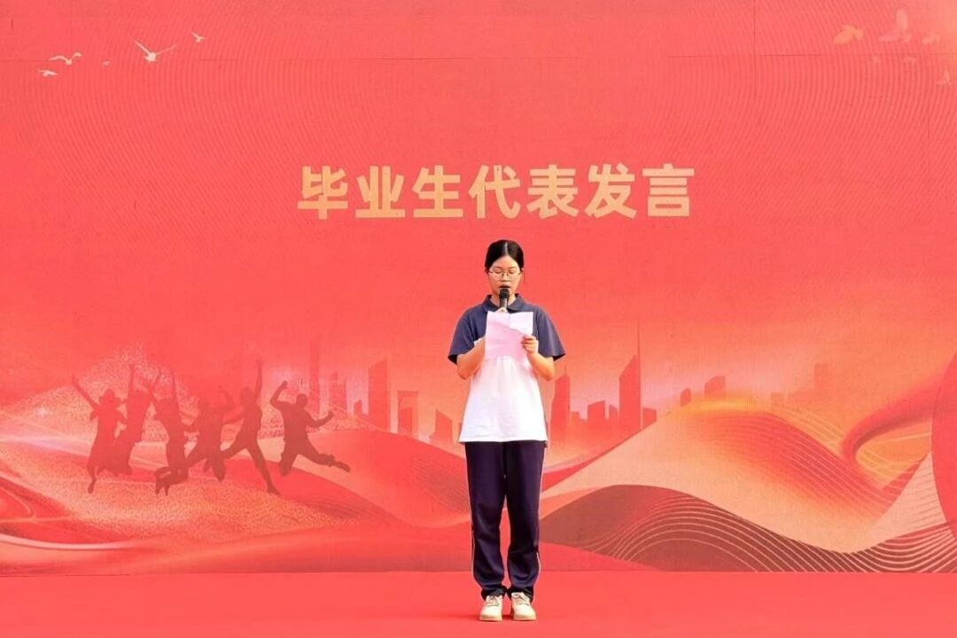 教师代表陈婉华老师满含不舍,细数三年来与学生们朝夕相处的点滴瞬间——课堂上的思维碰撞,活动中的欢笑汗水,挫折时的鼓励陪伴。声声叮咛中,是师长如父母般的殷殷嘱托与深深眷恋,更蕴含着对孩子们展翅高飞、勇敢追梦的坚定信心与美好展望。