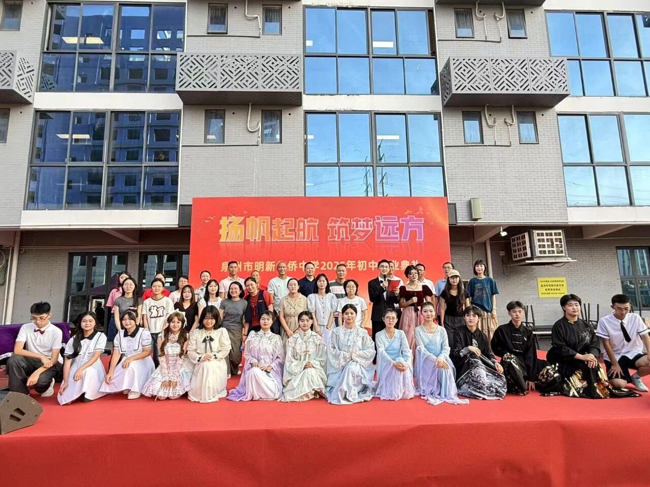 夏木扶疏,骊歌轻响。6月25日下午,明新华侨中学2025届初三毕业生齐聚校园,怀揣着对过往的深深眷恋与对未来的无限憧憬,迎来了属于他们的盛大毕业典礼。校领导、全体初三师生、家长代表共同见证了这一难忘时刻。