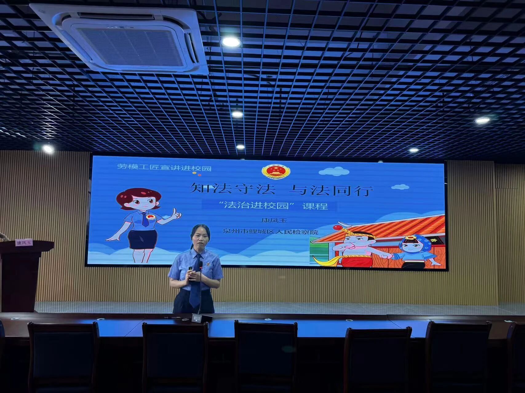 为深化青少年法治教育,护航未成年人健康成长,5月28日下午,泉州市明新华侨中学特邀鲤城区人民检察院康凤玉检察官莅校为我校初二年学生作“预防青少年违法犯罪”专题讲座。