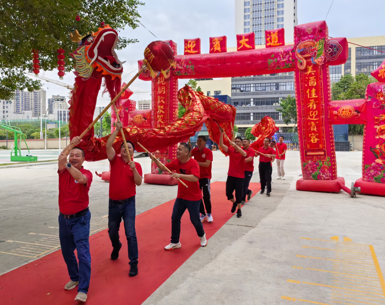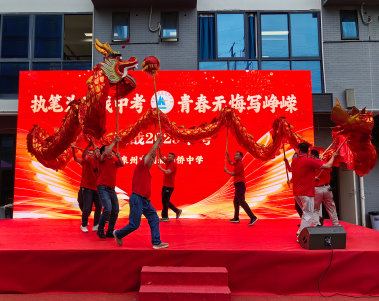 由校领导与初三教师组成的舞龙队腾跃翻飞,二十四节令鼓声震云霄!传统与激情碰撞,寓意“鱼跃龙门”——老师们用行动呐喊:我们与你并肩作战!