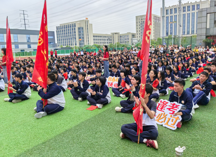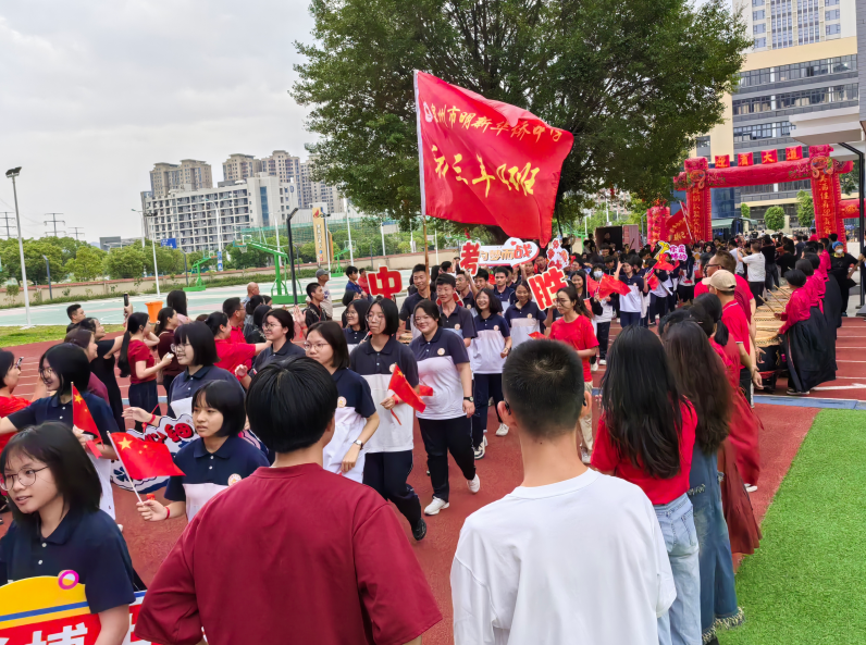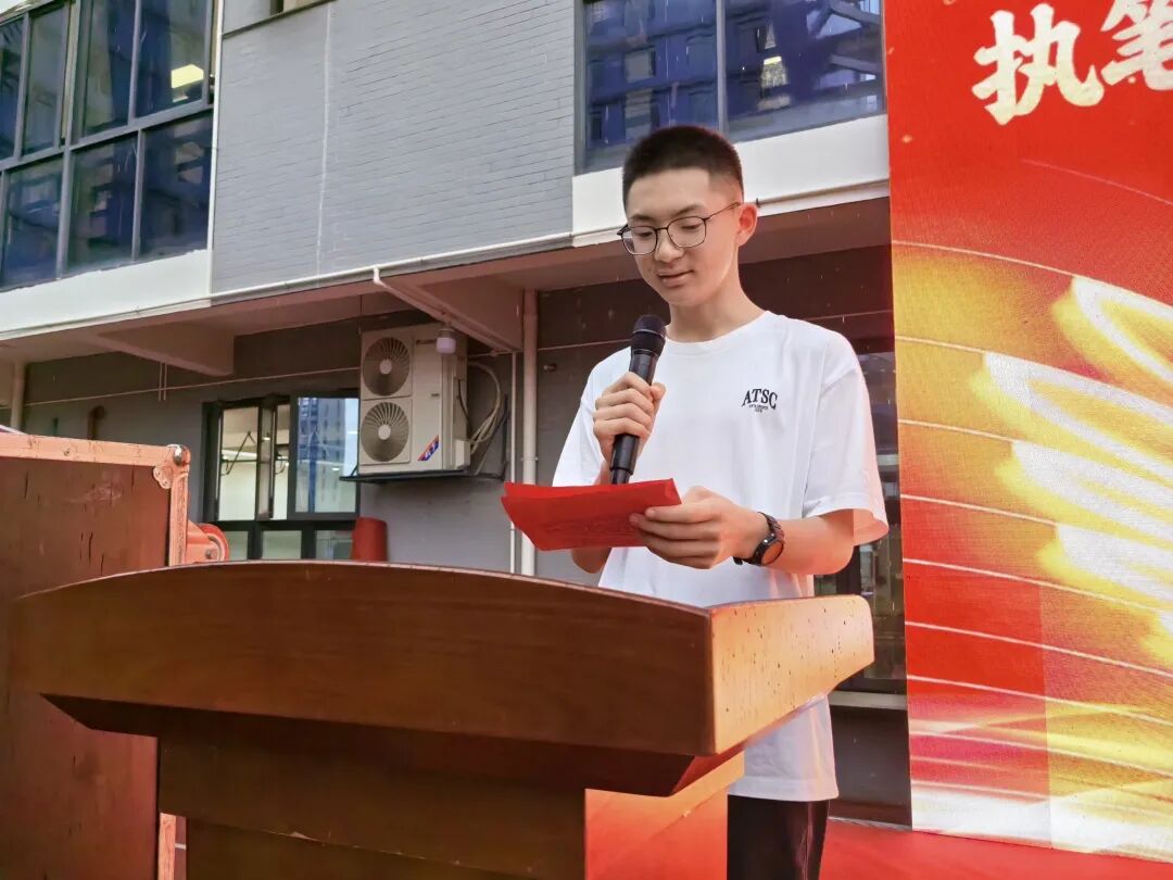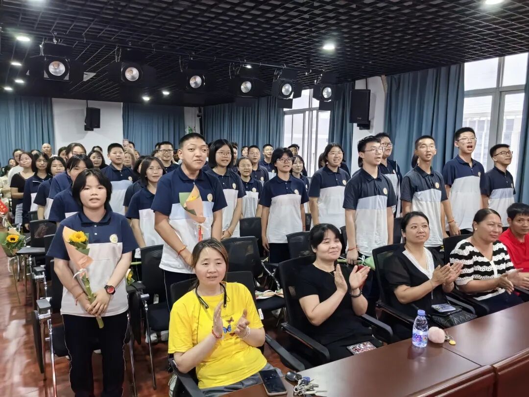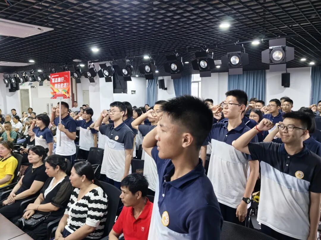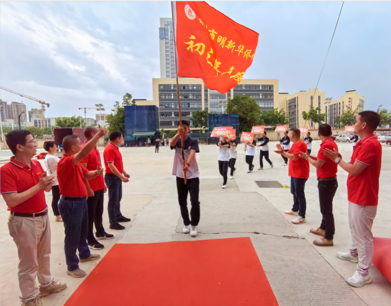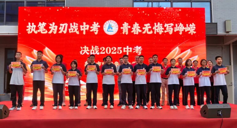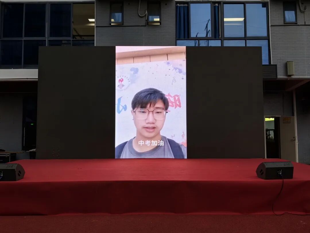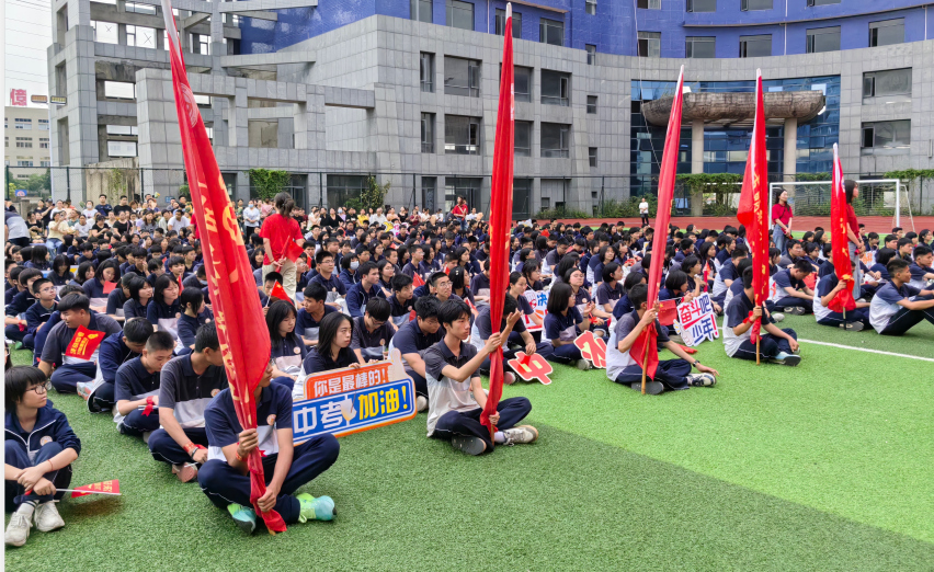 学生代表胡晓莎掷地有声:“全力以赴,中考必胜!拼搏到底,我必辉煌!”台下呼应声此起彼伏,同窗之情化作震耳欲聋的“明新必胜”!