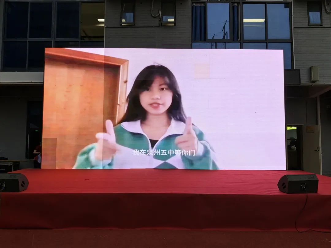 大屏幕播放历届优秀毕业生“云祝福”:“我在五中等你!”“食堂给你们留座!”……笑声与泪水交织,祝福与鼓舞齐到。