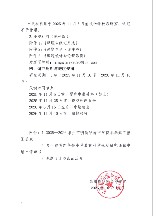 202549关于做好泉州市明新华侨中学2025秋课题申报的通知