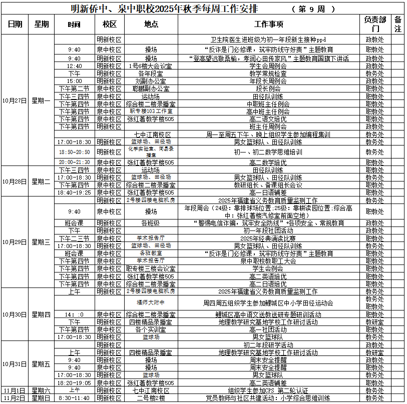 【10月27日 星期一】 2025年秋季第09周工作安排